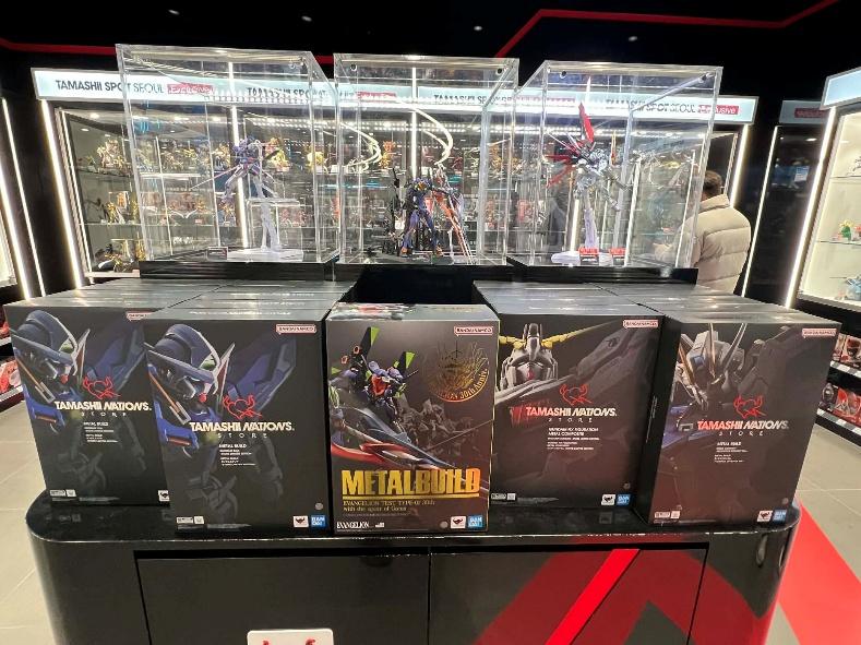 If you’re into metal builds, the Tamashii Spot Seoul section has Gundam Metal Build kits available, like the ones shown here: